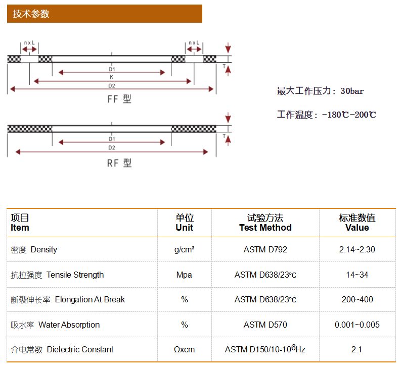 产品简介:由100%纯四氟树脂加工而成,具有优异的耐腐蚀性、耐老化、极低的摩擦系数和绝缘性能。